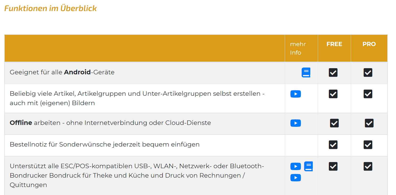 Auf der Webseite ist klar zu erkennen, ob es zu einer Funktion bereits ein Video gibt, das direkt angeschaut werden kann.