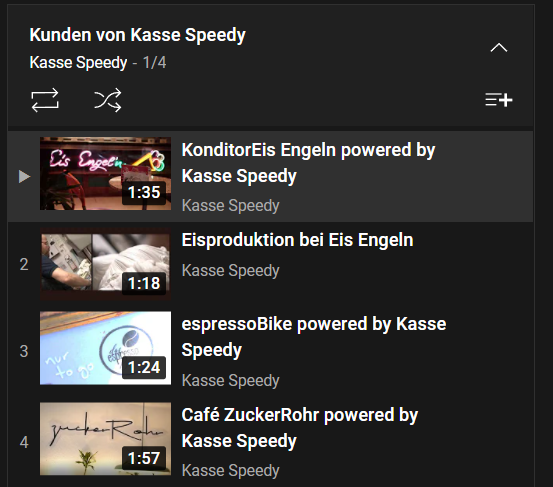 Bei den Image- und Success-Stories liegt der Fokus mehr auf dem Verbraucher und der Sparte. Da bestimmte Funktionen deutlich besser dargestellt werden können wenn sie vom Fach fürs Fach erklärt werden lag es nahe bestimmte Kunden bei der Arbeit mit Kasse Speedy zu filmen und zu interviewen https://youtu.be/A9cIyhY8dgc?t=221 . Damit verbunden wird auch immer ein kleiner "Porn" gedreht welchen MTmax den Kunden als kleines Dankeschön zur Verfügung stellt https://youtu.be/LlxK3suWJCs.